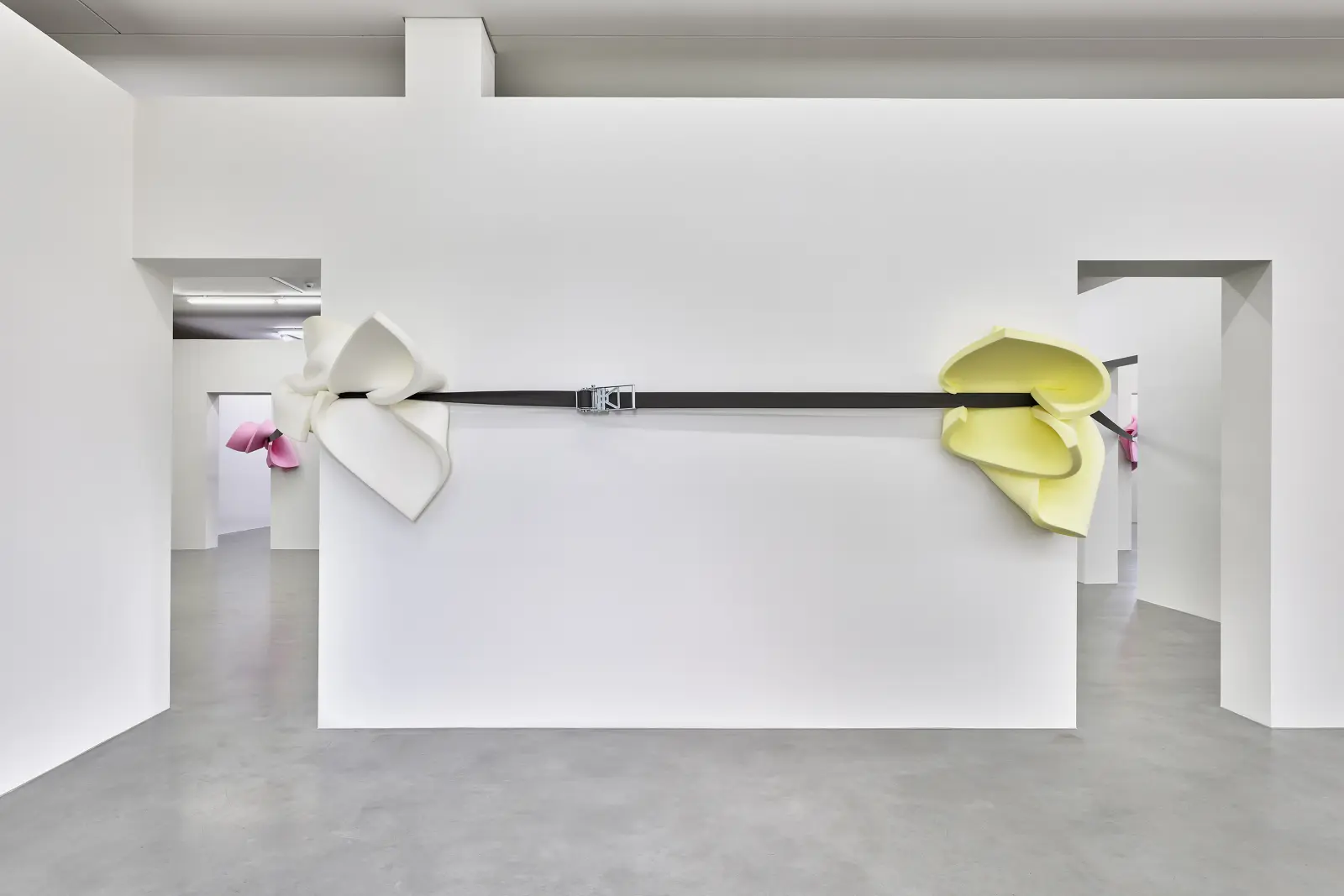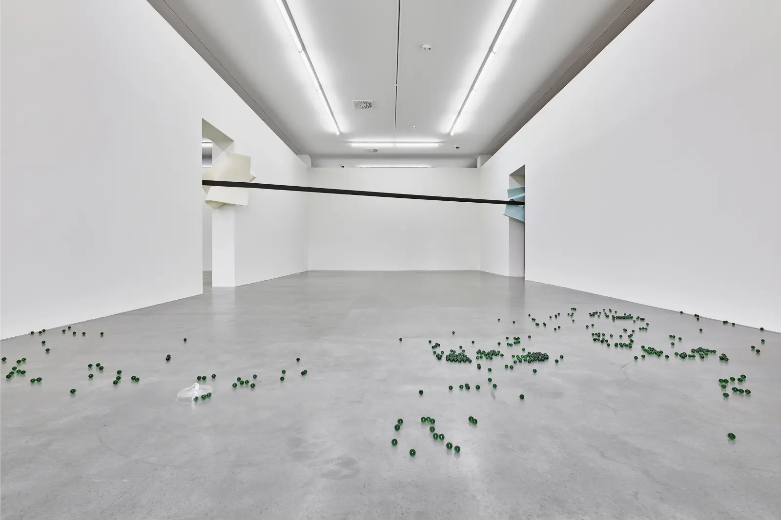 A new ensemble of works radically recodes the exhibition space. Conceived for the entire spatial structure, installations, sound and video works, performances, and context-specific interventions extend across and beyond individual rooms. Small and large, loud and quiet events intersect and continuously reconfigure, transforming the architecture into a living, overarching sphere that unfolds as a multilayered choreographic experience.
