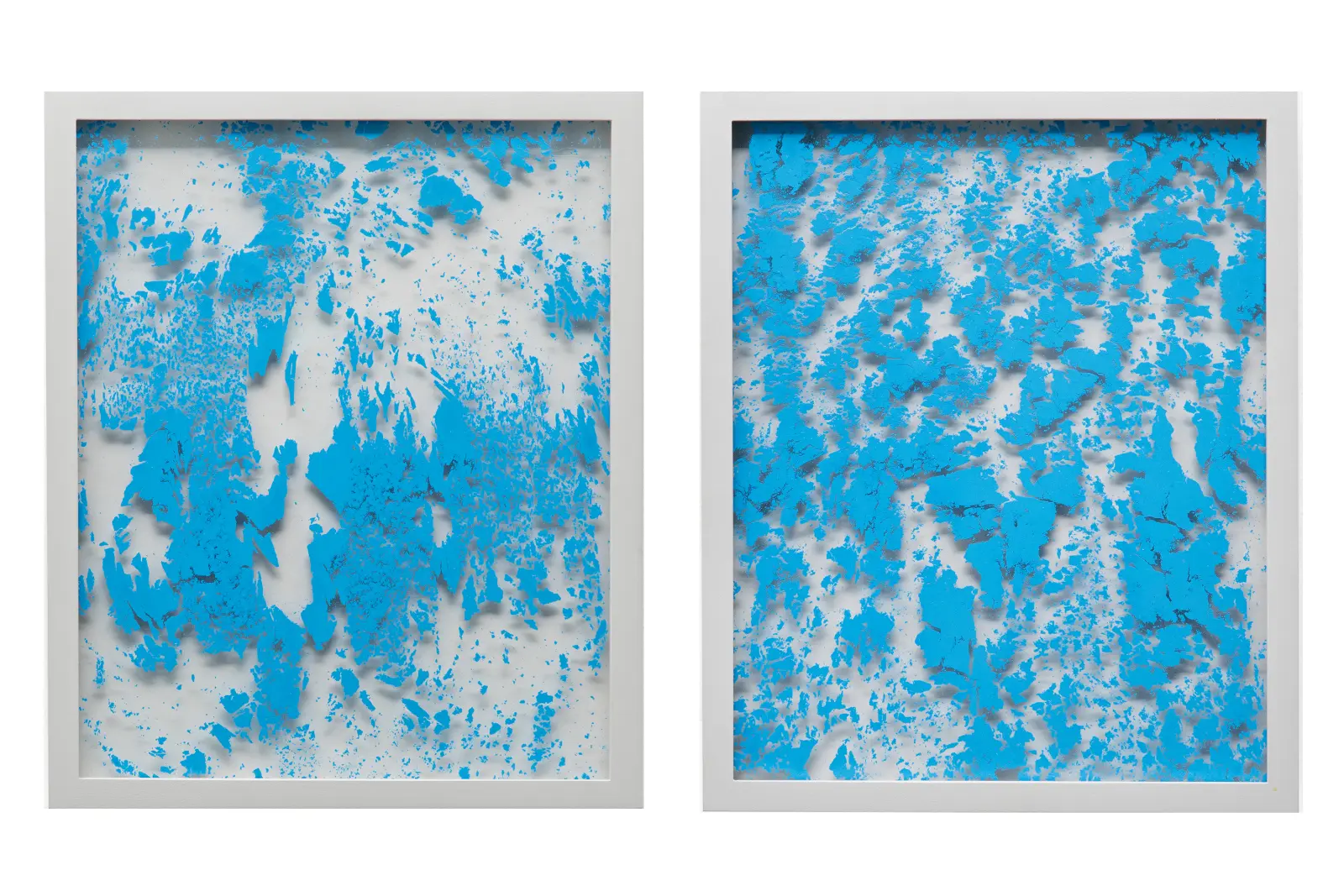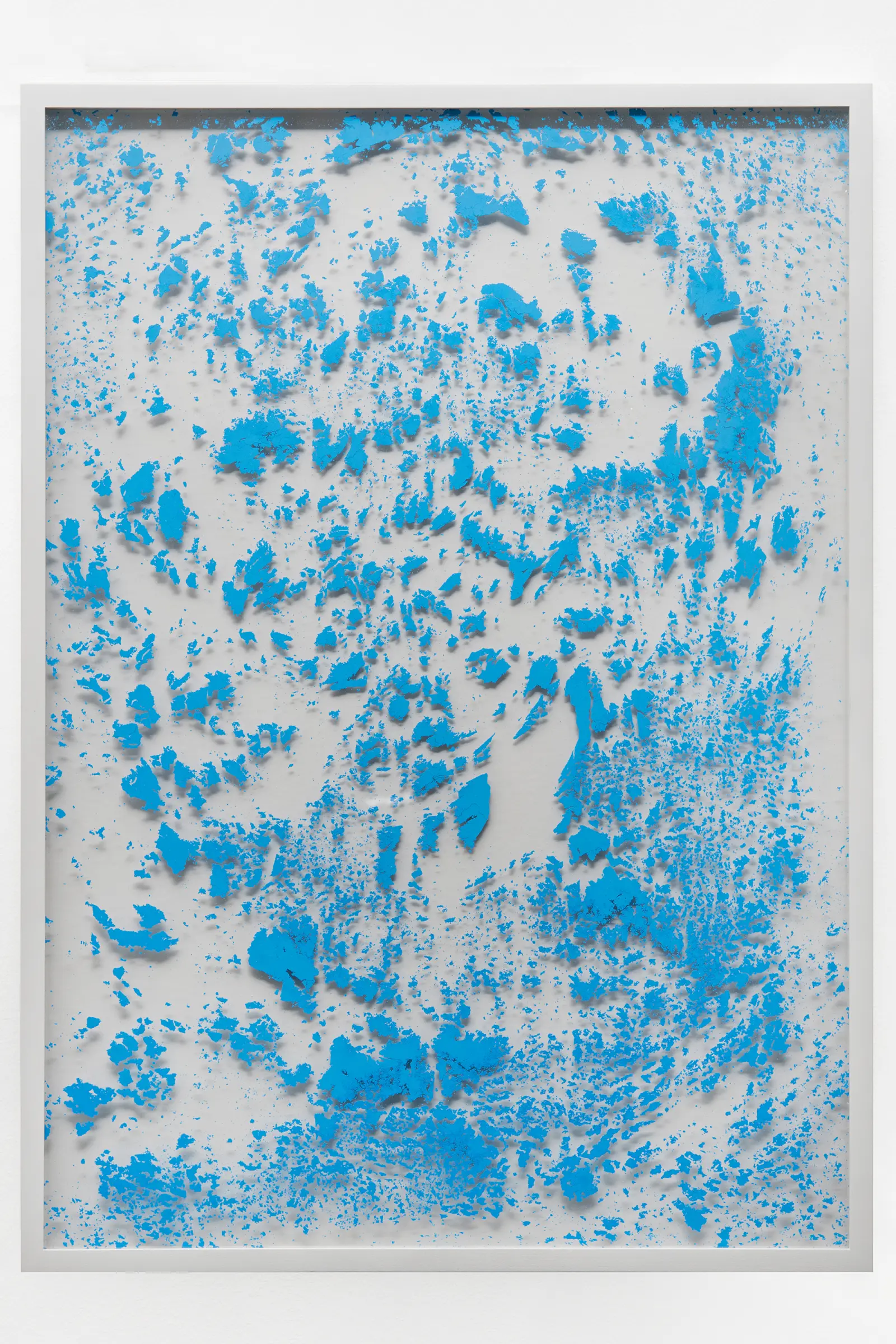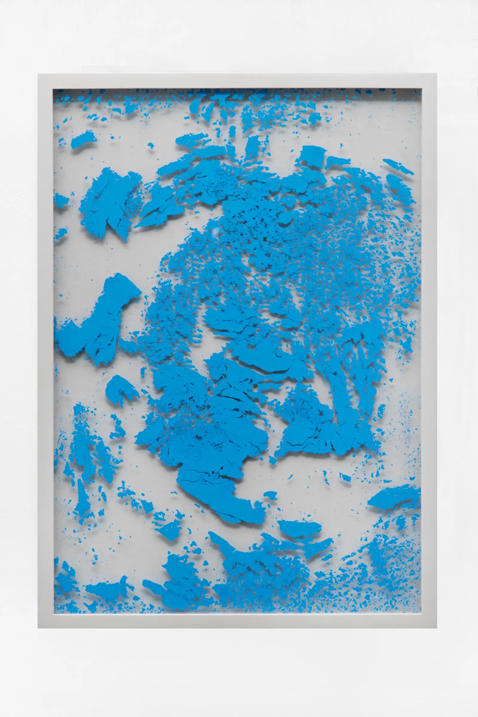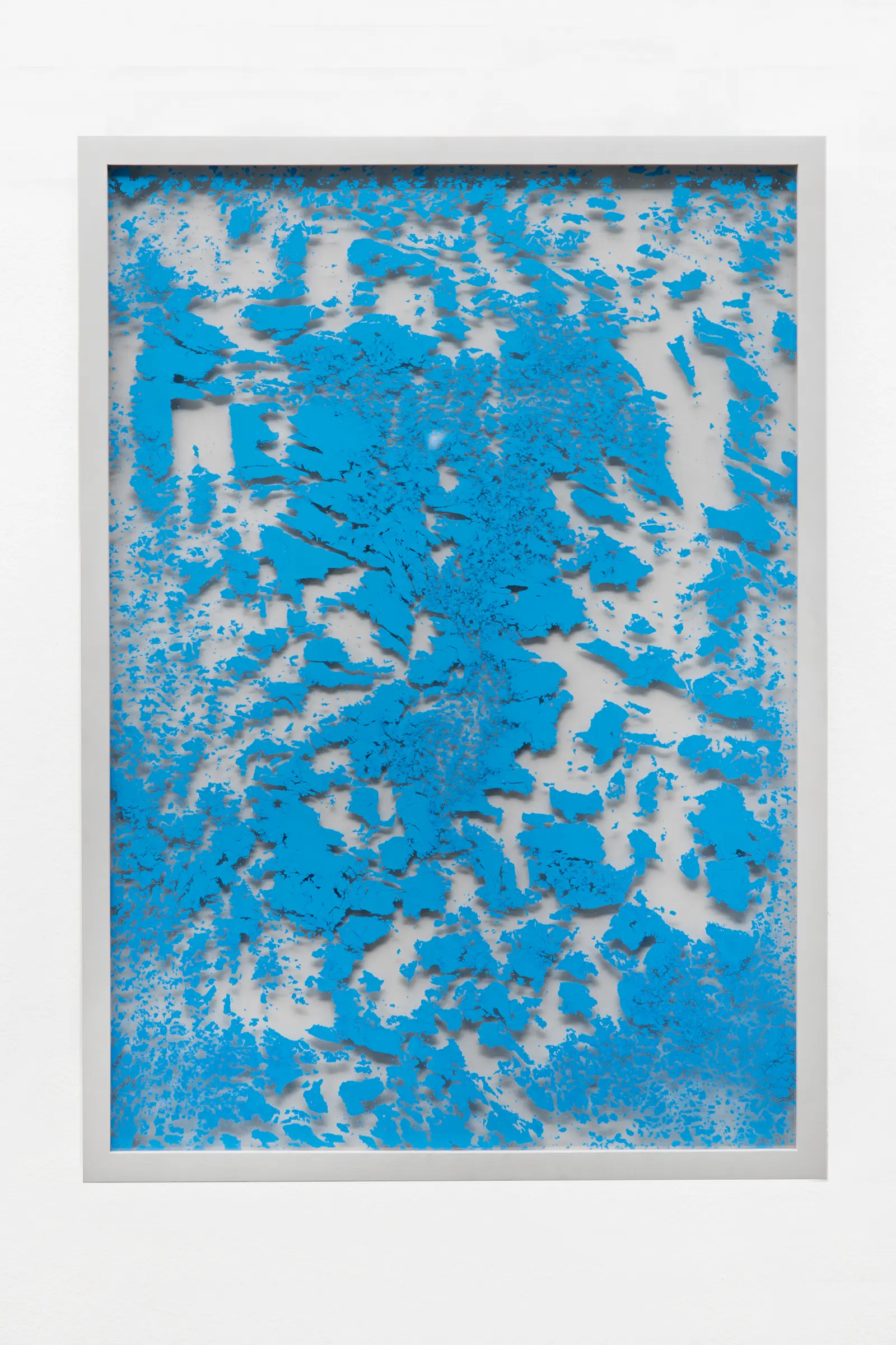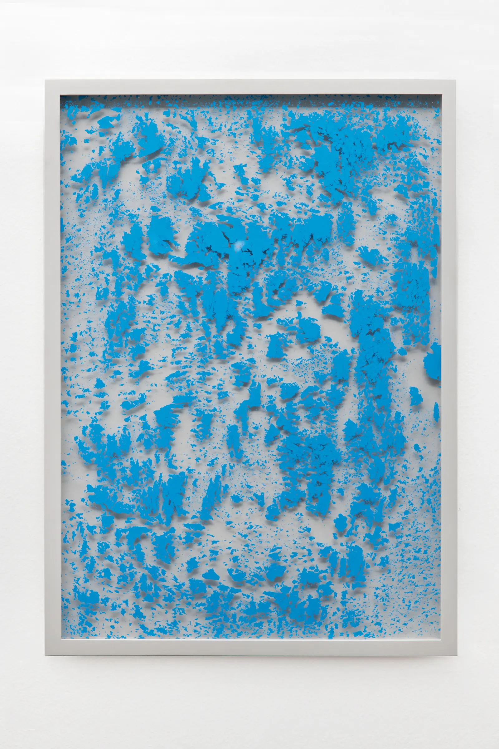 Für die Werkserie wird eine dünne Schicht Pigment auf eine Glasscheibe gesiebt und mit einer zweiten Scheibe abgedeckt. Dieser Vorgang zersetzt und strukturiert gleichermaßen die geschlossene Pigmentfläche, schafft auf diese Weise vielfältige Formen und versiegelt diese zugleich. Zwischen den Gläsern und der grauweißen Fläche der Rahmenrückwand zeigen sich Licht- und Schattenwürfe und geben dem Raum des Rahmens Tiefe. Die filigranen Formen aus losem Pigment bilden dabei einerseits die Handlung des Siebens ab, die aus einer scheinbar gegensätzlichen Kombination von Materialauftrag und mechanischem Eingriff bestimmt wird; andererseits die Handlung der Betrachtung, die eine imaginäre Struktur von räumlicher Qualität erkennt.