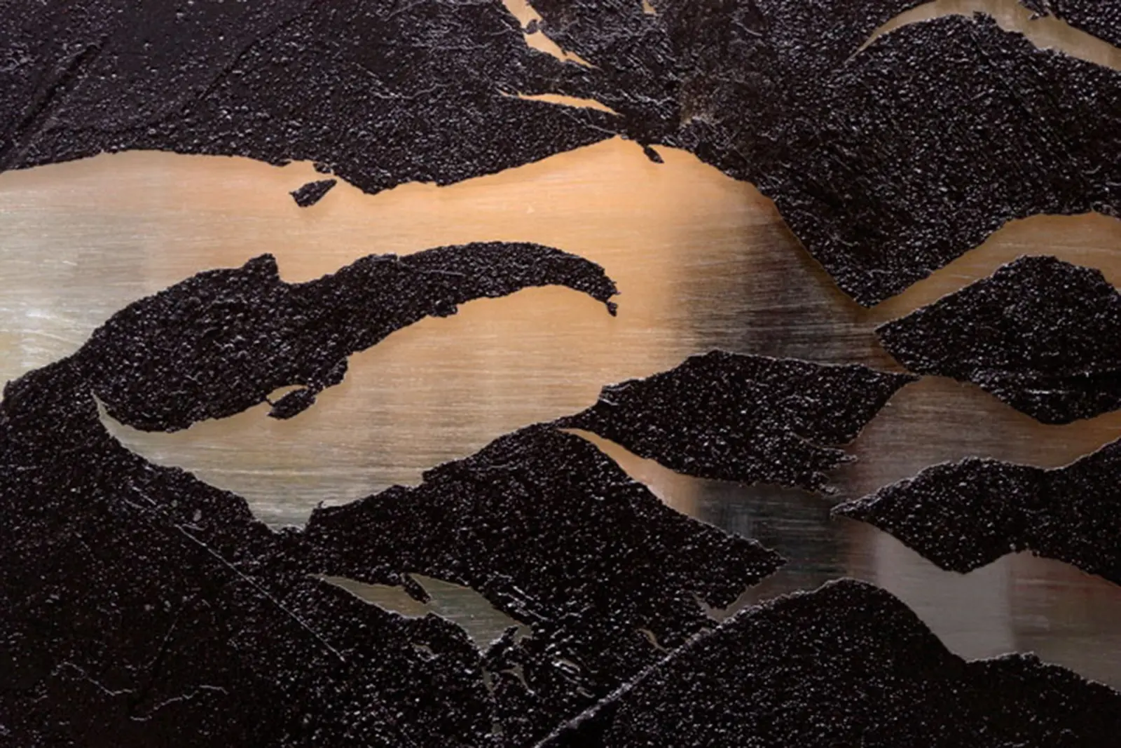 A windowpane becomes the carrier of a double-sided image field through the application of black dubbin outside and colourless dubbin inside. On the street side the material attracts particles of dust and dirt or airborne pollen, thus losing its initially clearly defined form. The transformation process evidently invites passers-by to intervene.