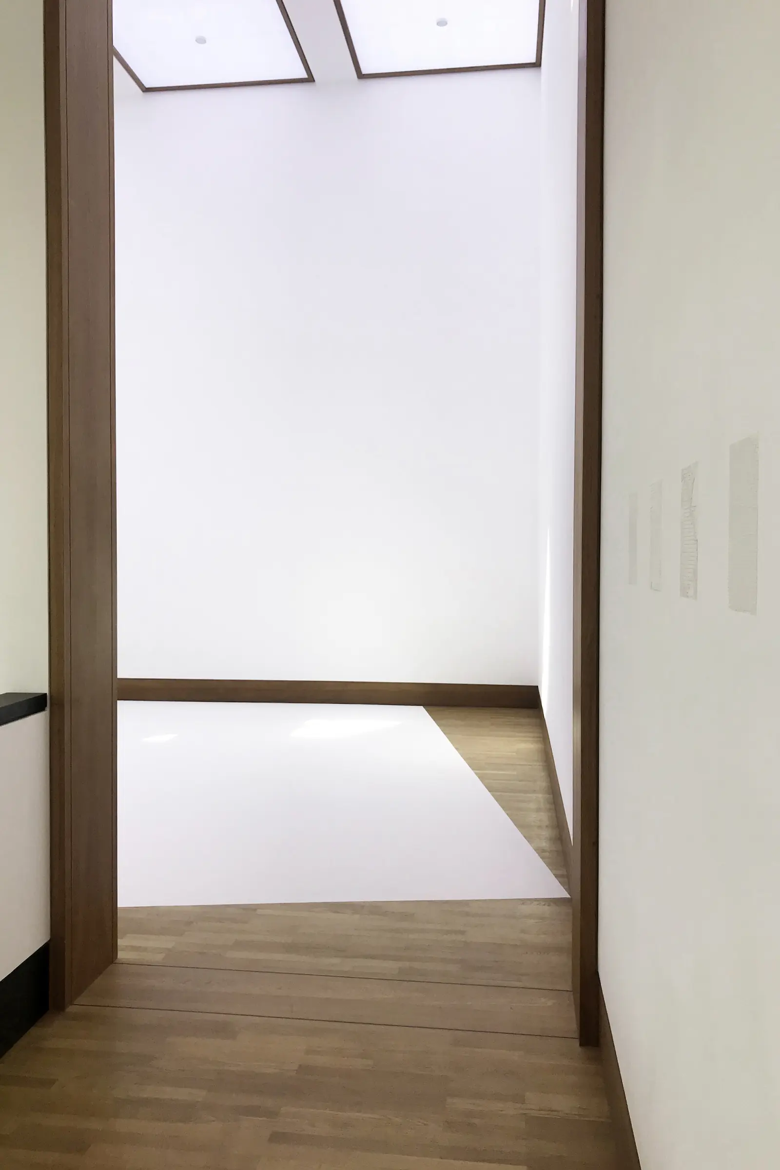 In der Einzelausstellung „Toter Winkel“ verwandelt Schirin Kretschmann die Wahrnehmung der leeren Ausstellungsräume in eine physische Erfahrung. Die konzeptuellen und materiellen Transformationen, die sie in ihren Interventionen realisiert, unterwerfen die Beziehung von Betrachter, Werk und Umgebung einer permanenten Wandlung. Im Obergeschoss der Galerie realisiert die Künstlerin eine streng geometrische Bodenarbeit aus fein gesiebtem Pigmentstaub. Möglicherweise ist nicht jeder Bereich gleich gut einsehbar; nach und nach sammeln sich Staub, Pollen und Insekten auf den verletzlichen Flächen – lauter Dinge, die sich unbeachtet Tag und Nacht durch die Luft bewegen und die von dem Pigment wie von einem Detektor eingefangen werden zu einer stillen Manifestation der vergehenden Zeit.