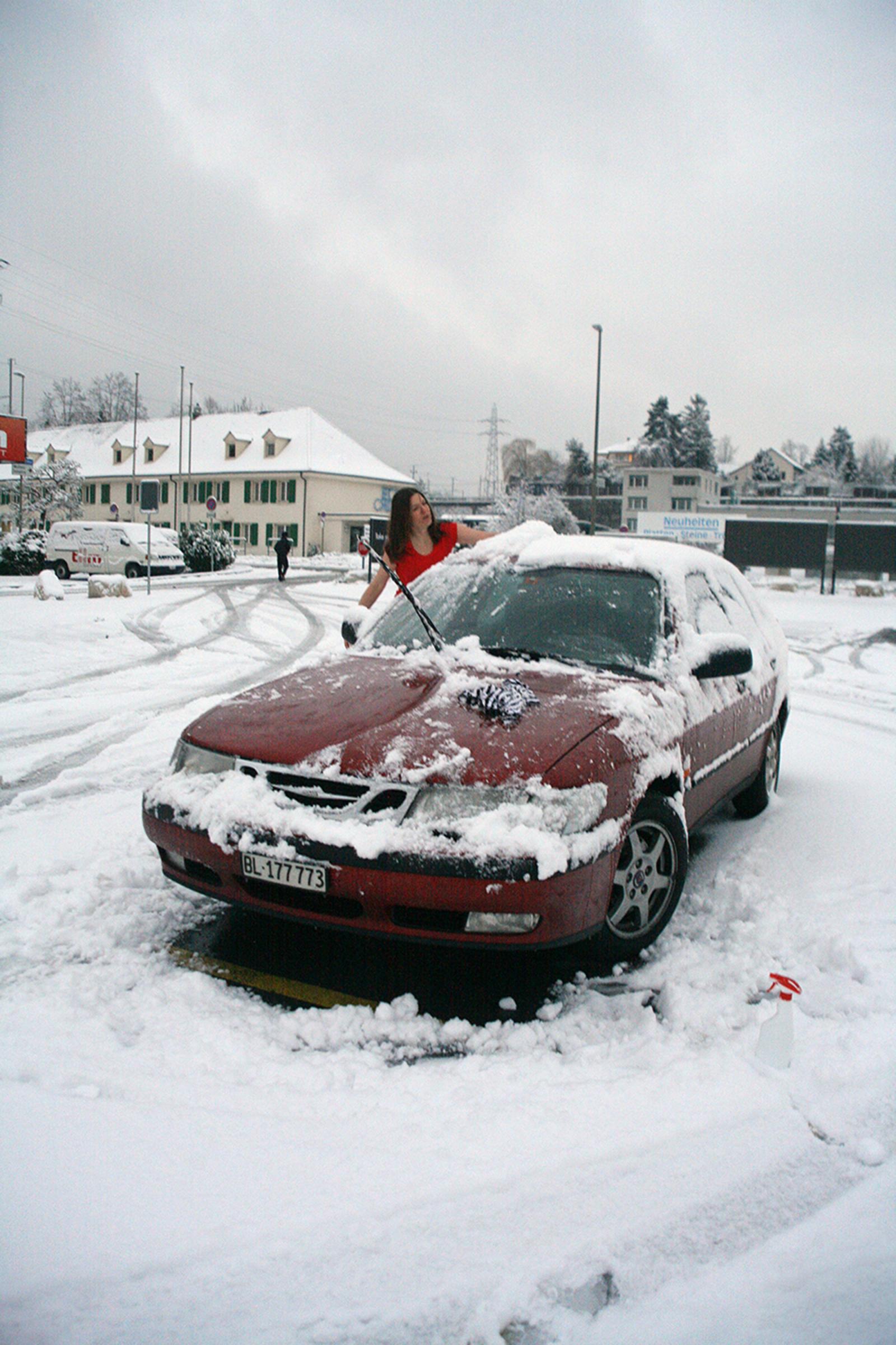 In Nähe der Fensterfront der Ausstellungsfläche des Kunsthaus Baselland werden 20 identische rote T-Shirts auf einem Sockel gestapelt. Zur Eröffnung und zu bestimmten Zeiten im Verlauf der Ausstellung wird die eigene Oberbekleidung gegen eines der roten T-Shirts im Ausstellungsraum ausgetauscht. Die eigene Oberbekleidung wird als Putzutensil für eine Aktion verwendet, bei der mit Glasreiniger alle roten Autos geputzt werden, die sich zum jeweiligen Zeitpunkt auf den sichtbaren Parkplätzen vor dem Kunsthaus Baselland befinden. Anschließend wird das als Putzutensil eingesetzte Kleidungsstück zurück in den Ausstellungsraum getragen und neben den T-Shirt-Stapel geworfen. Das rote Hemd wird anbehalten und wandert so in den eigenen Haushalt. Diese Aktion wird mehrmals wöchentlich wiederholt, die Handlungsspuren sind im Ausstellungsraum an der quantitativen Abnahme der roten T-Shirts und der Zunahme der gebrauchten Kleidung ablesbar.