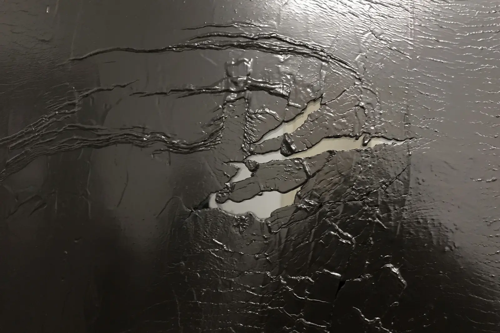 Schirin Kretschmann realisiert in der „Putte“ eine ortsspezifische Intervention und nutzt hierfür die physikalischen und ästhetischen Eigenschaften von Lederfett. Das industriell hergestellte Material, das üblicherweise für die Pflege von Lederstiefeln eingesetzt wird und dicht aufgetragen an flüssigen Asphalt erinnert, bleibt in der Ausstellungszeit offen für temporale Veränderungen. Die konzeptuellen und materiellen Transformationen, die sie in ihren Arbeiten realisiert, unterwerfen die Beziehung von Betrachter, Werk und Umgebung einer permanenten Wandlung. (Pressetext)