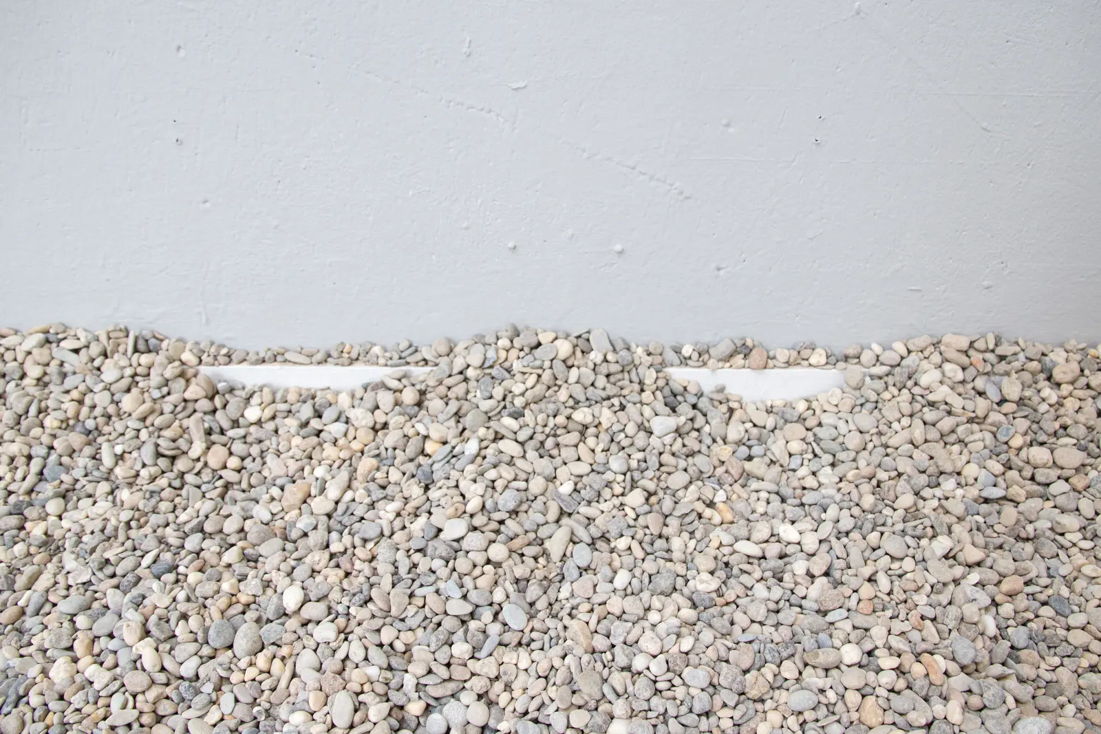 Die Arbeiten von Schirin Kretschmann sind situativ und prozessual angelegt, indem sie von einer anfänglichen künstlerischen Setzung ausgehen und Entwicklungen oder vielfältige, synästhetische und sich beständig wandelnde Prozesse anstoßen. Dem Betrachter kommt dabei eine aktive Rolle zu. Die Intervention „Site“ thematisiert die räumliche Durchdringung des Ausstellungsbereichs mit dem direkten städtischen Umfeld. Hierfür wurde der Boden des Einraumhauses für die Dauer der Ausstellung mit Kies bedeckt, dieser nach Ausstellungsende um das Gebäude herum verteilt.
