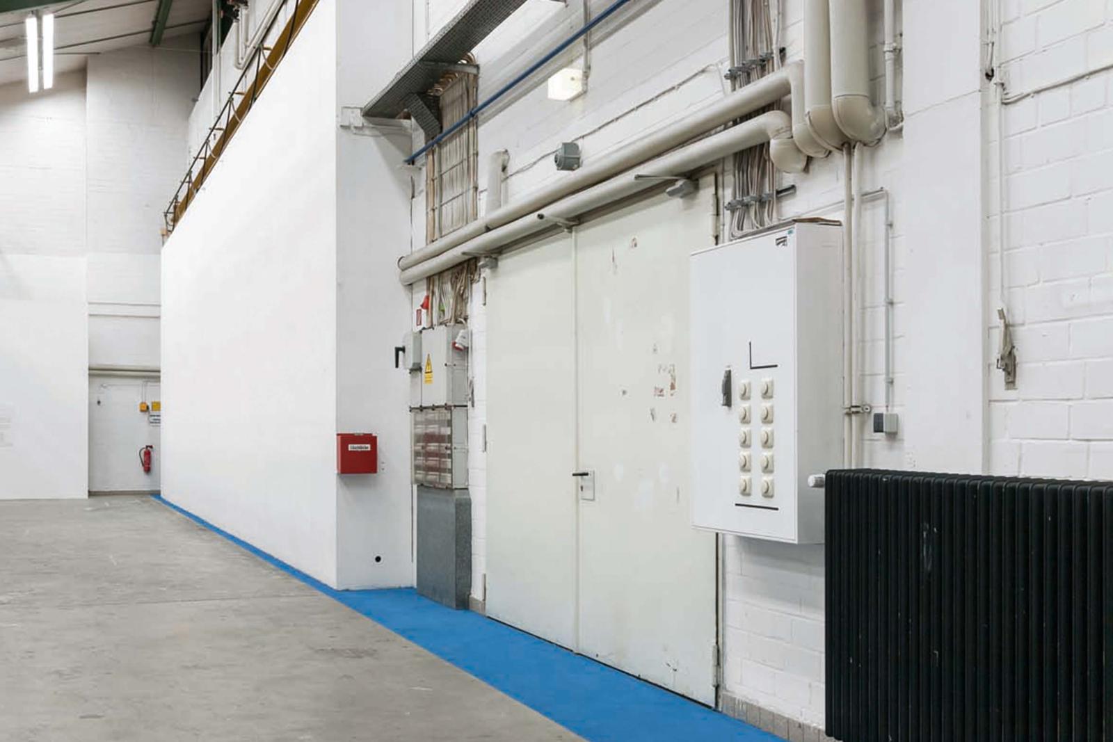 The work is made of fine blue pigment powder mixed with an equal part of plaster and applied with utmost precision onto the blotchy floor along the wall of the exhibition hall, forming a strip of varying width and approximately 20 meters long. Due to the latter’s sharp edges, the unpainted wall – together with the pipes, cables and technical equipment, which partially disappear behind an additional white display wall – appears from a distance as an ensemble of various readymades composed of wall and ceiling configurations. Like an exhibition within the exhibition, it draws attention to the ephemeral details of the fixtures, infrastructure and openings, now apparently transformed into sculpture-like everyday objects. (Carsten Probst)